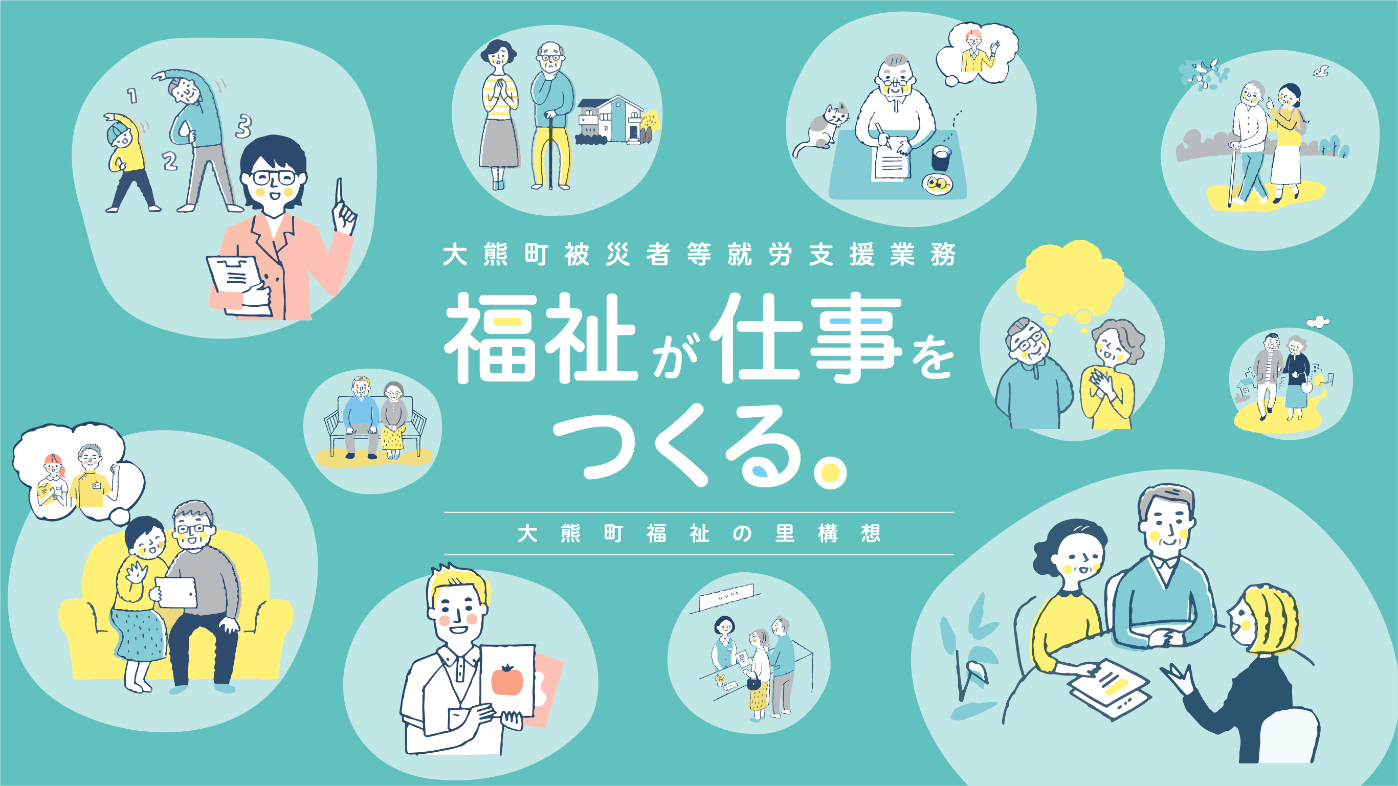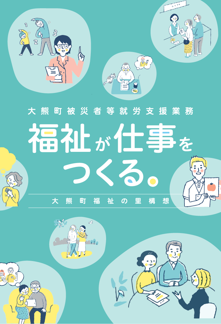 「大熊町福祉の里構想」は、年齢や境遇に関わらず、すべての人が安心して生きがいを感じながら暮らせる地域を目指すものです。大熊町では、2021年春から町民が得意なことを活かして活躍できる環境をつくるため、福祉を通じた仕事づくり事業をスタートします。
